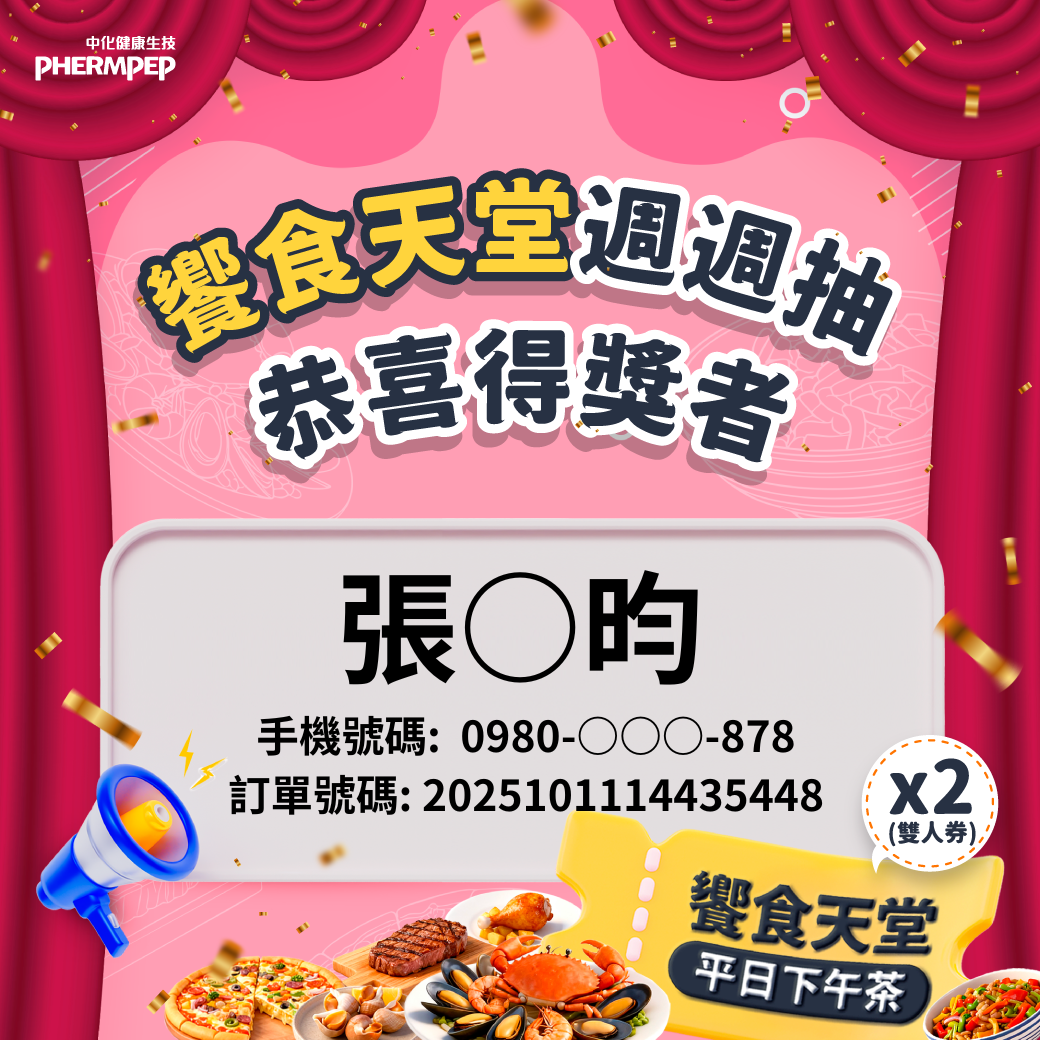 1.中獎名單公布後本公司會主動通知中獎人,需協助完成兌獎資料填寫後才會將獎品寄出,中獎者可以加入中化健康LINE官方帳號以利回傳兌獎資料。