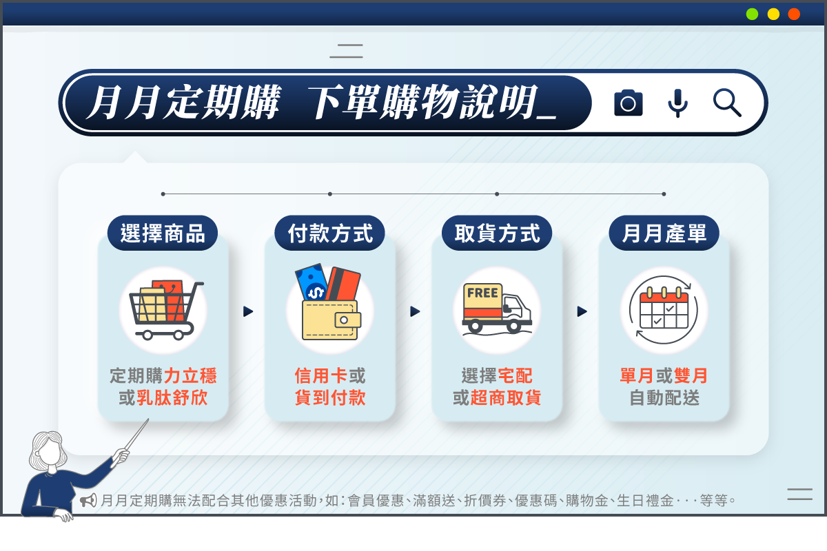 Q:【月月定期購】能搭配網站上的優惠活動嗎?
